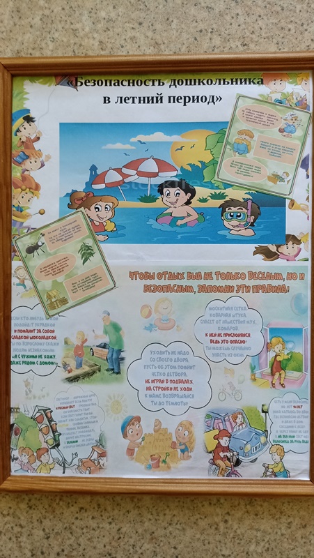 В рамках всероссийской акции "Безопасное детство", в которой наш детский сад принимает активное участие, с целью повышения профессиональной компетентности педагогов по организации безопасности жизнедеятельности воспитанников, была организована выставка стенгазет "Лето без опасности". В мероприятии приняли активное участие все педагоги ДОУ. В содержании работ отражены направления по ОБЖ детей дошкольного возраста: "Пожарная безопасность", "Безопасность дорожного движения", "Безопасность в природе" и т.д. Выставка творческих работ воспитателей украсила фойе нашего ДОУ.
