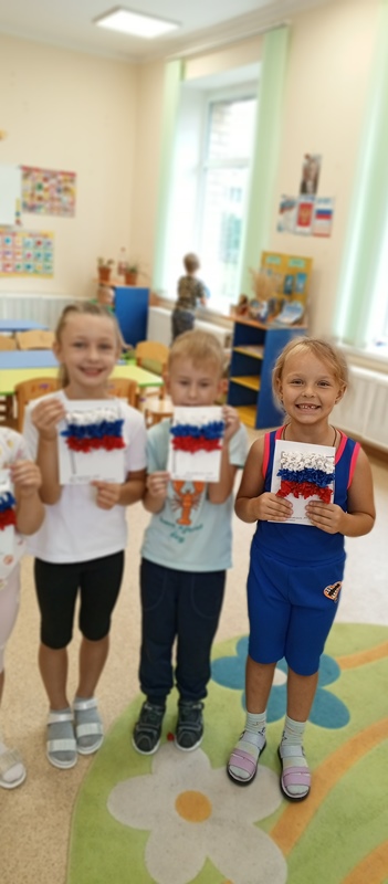 Не остался незамеченным этот день и в нашей группе "Солнышко" тоже не остался в стороне: для детей были проведены тематические занятия, беседы, посвященные Российской символике. Из бесед с педагогами ребята запомнили, что граждане России гордятся Государственными гербом, флагом и гимном и что без этих отличительных знаков страны не обходится ни одно важное для страны событие Дошколята узнали об истории появления Российского флага и его значимости для нашего государства, а на прогулке дети с удовольствием поучаствовали в игре-эстафете "Кто быстрее доставит флаг", рисовали флаг Родины и оформили выставку. А занятия по художественно-эстетическому развитию помогли торжественно украсить к празднику каждую группу. Мы с ребятами провели интересный мастер класс российского флага своими руками способом торцевания.