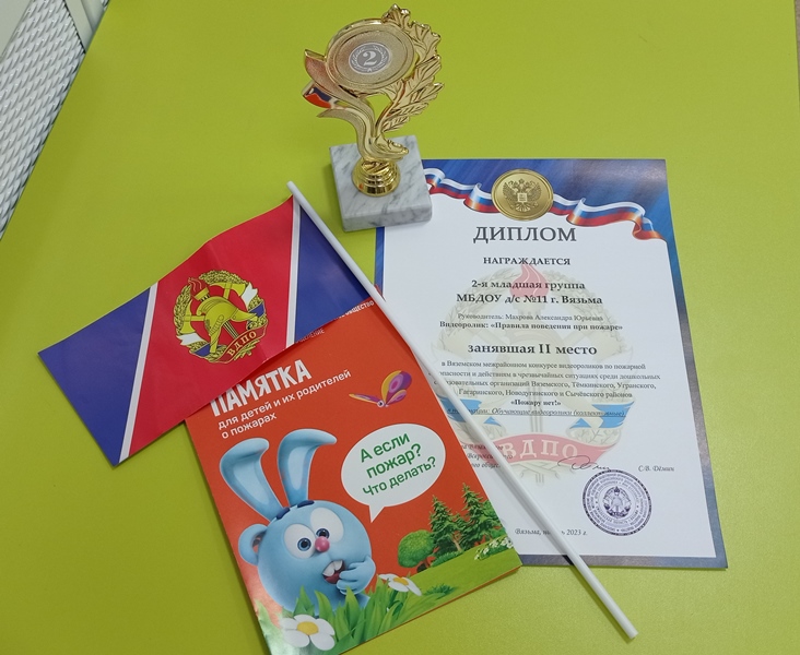 Воспитанники нашего детского сада регулярно становятся участниками различных конкурсов. Сегодня мы поздравляем ребят второй младшей группы "Божья коровка", а также их воспитателя Махрову А.Ю., которые стали призёрами межрайонного конкурса видеороликов по пожарной безопасности "Пожару нет!". Наши воспитанники стали самыми юными участниками конкурса, но это не помешало им завоевать почётное второе место. За победу в конкурсе ребята получили заслуженные памятные призы от Смоленского областного отделения ВДПО. Поздравляем!!!