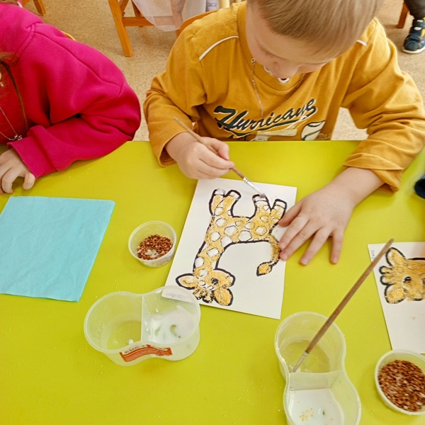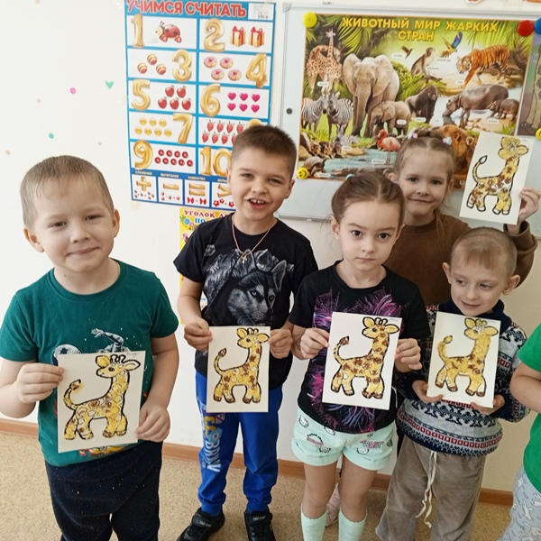 Вот прошла еще одна тематическая неделя в подготовительной группе "Солнышко", которая называлась "Животные жарких стран". Дети проявили огромный интерес и активность в познании нового. Много было прочитано, просмотрено, обговорено, сделано. Всю неделю мы с ребятами знакомились и закрепляли знания о животных жарких стран. С помощью презентации "Животные жарких стран", бесед, чтения литературы познавательной и художественной о животных, ребята узнали о том, почему верблюда называют "кораблем пустыни", и зачем тигру и зебре полоски, а жирафу пятна. Свои знания и умения применяли ребята в разных видах деятельности – рисовали, разукрашивали силуэты животных жарких стран, рисовали зверей по клеточкам, собирали пазлы, лепили и конструировали. Дети с интересом сделали аппликацию, в нетрадиционной технике рисования (крупами).