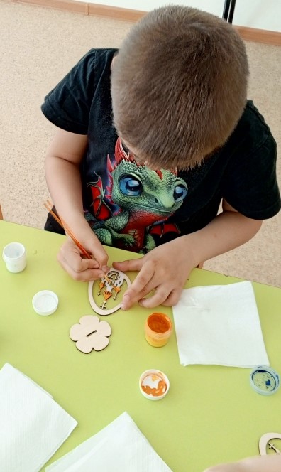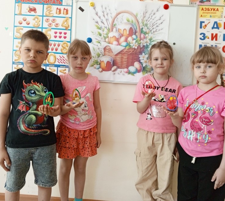 На творческой мастерской ребята расписывали заготовки яиц из дерева. У всех получились свои красивые, необыкновенные росписи.