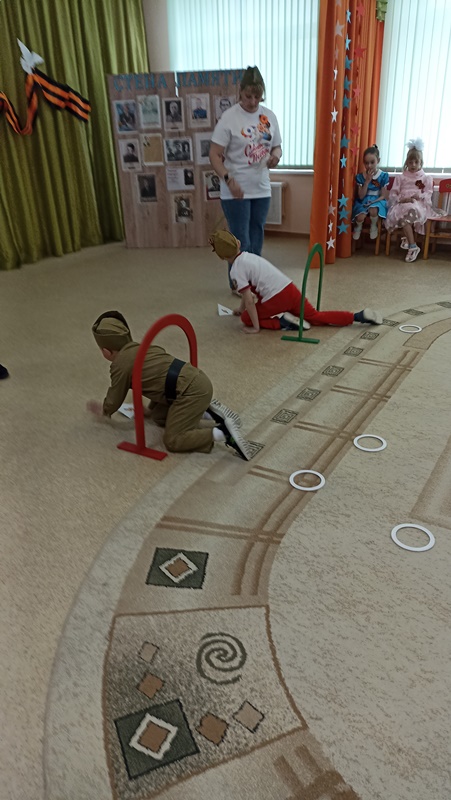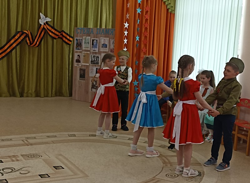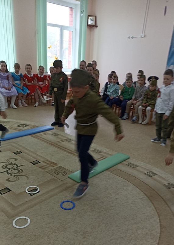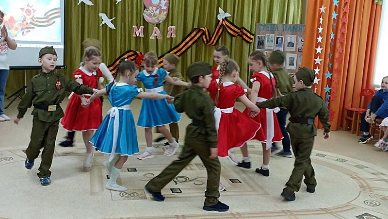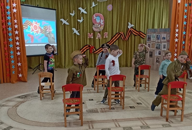 В преддверии празднования Дня Победы в ДОУ прошли мероприятия, направленные на укрепление нравственно- патриотических чувств дошкольников, формирования знаний о ВОВ через различные виды деятельности. Вся работа проводилась с целью патриотического воспитания дошкольников, любви к своей Родине и уважения к людям, которые ковали Победу. «Праздник памяти и славы» стал итогом мероприятий, посвященных Дню Победы. В программу мероприятия вошли песни и стихи о войне, игры «Доставь письмо», «Метание гранат». Все присутствующие в зале почтили минутой молчания память о погибших героях войны.