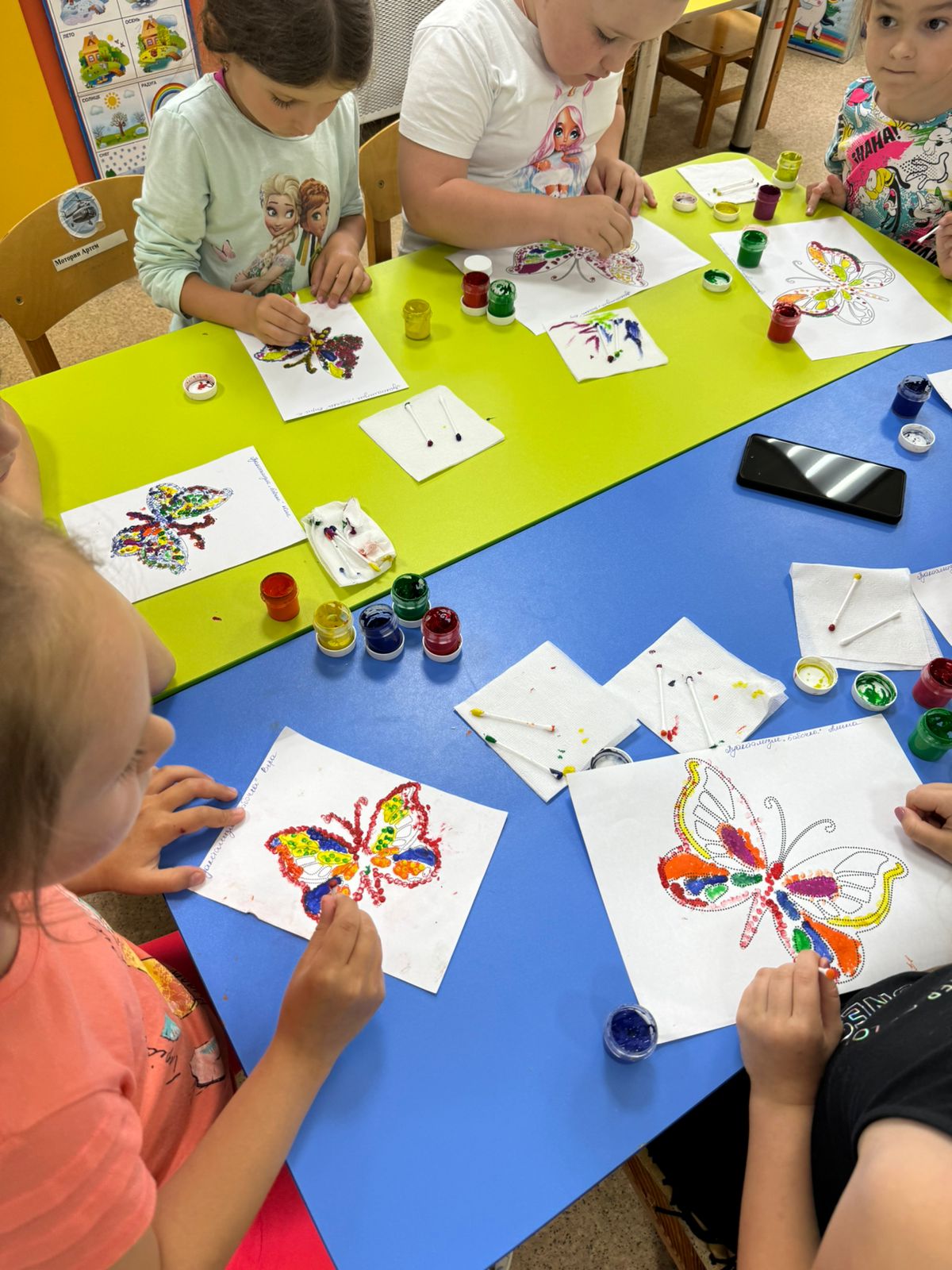 И правильно, мы всё лето любуемся этими легкокрылыми красавицами. Почему бы не уделить им особое внимание? Миллионы этих хрупких невесомых красавиц живут на нашей огромной Земле. Каких-то из них мы встречаем около своих домов, а некоторых – на участке в детском саду. В ходе этого необыкновенного дня, дошколята узнали много нового и интересного о бабочках, их многообразии, строении, образе жизни. Благодаря своей фантазии, каждый из ребят из групп «Солнышко», «Пчелка» и «Божья коровка» сделали свою неповторимую бабочку в виде аппликации и нетрадиционной технике рисования «пуантилизм». Получилось просто великолепно! Было интересно всем!