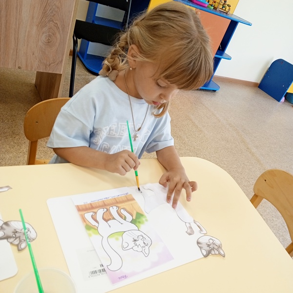 Интересно было детям сыграть и в подвижные игры: «Кошки и мыши», «Воробушки и кот», «Назови котенка», «Скажи ласково». А в честь праздника дети сделали аппликацию «Мой любимый питомец».